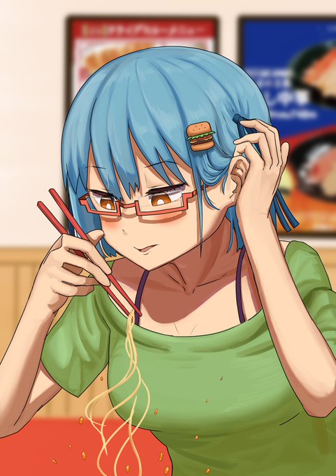 ずっと描きたいと思っていたハンバーガーちゃんを描きました。 タイトルは『掴んだ麺が全部落ちて、ラーメンのスープがめっちゃ服に散るハンバーガーちゃん』です🍔 #ハンバーガーちゃん