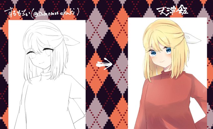 tomachさん(@Uju_tomachi)と合作しました!!めっちゃ可愛くてすごく綺麗に塗れました😆😆私の線画もこんなに可愛く返ってきました!!ありがとうございます!!😆