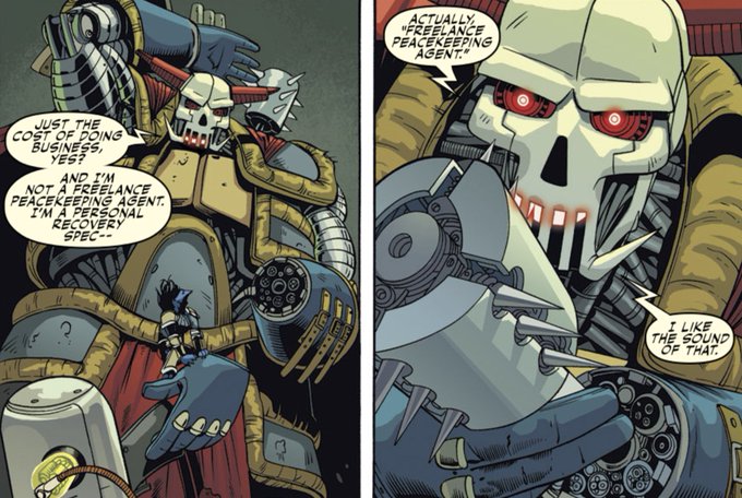 Today I learned that Death's Head got his "freelance peacekeeping agent" catchphrase from Hank McCoy https://t.co/NeemRRCUn7