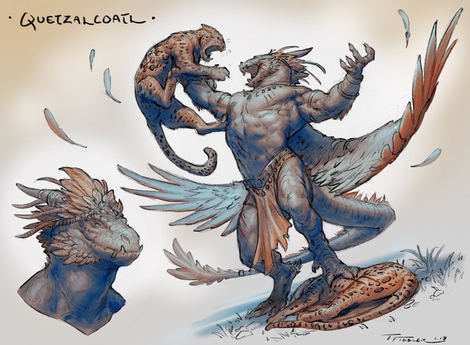 Day 8 of #Creatuanuary2019 ! #Quetzalcoatl ! Went with a more humanoid version for this prompt. Thanks and enjoy!😁 #Creatuanuary #creature #dragon #procreate #ipadpro #mayan #mythology #cheetah #cat #wings #art #drawing #sketch #digitalart #conceptart #characterdesign #fight