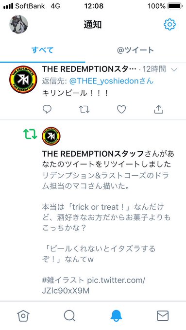 そしたらまさかのリデンプションのスタッフ様からいいね&RTをもらってぶったまげますたw