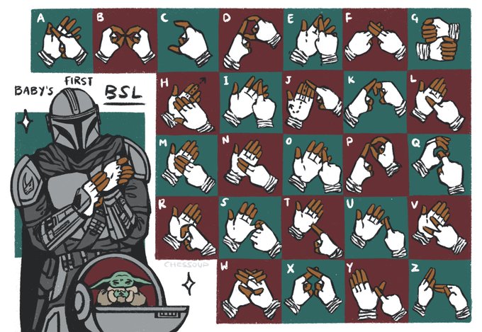 Learn to sign the BSL alphabet with #TheMandalorian and #TheChild ! So happy to see the inclusion of more sign language in the show 👏🔥