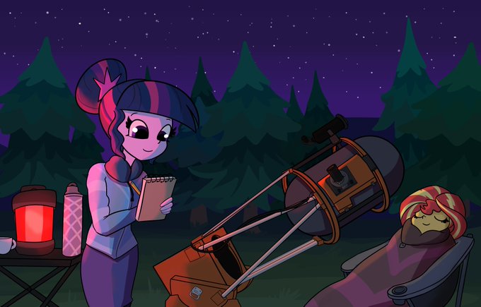 A little astronomy in the comfy forest. The commissioner demanded realistic telescopes in their fantasy cartoon horse / magical girls fanart