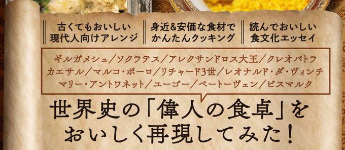 本書の構成は前半がレシピページ、後半が各時代の食文化や逸話、そして前半で紹介したレシピの詳細や再現過程を紹介するテキストになっています。 巻末「レア食材&調達リスト」では、入手が難しそうな食材の調達方法をくわしく紹介しています。作っておいしい・読んでためになるレシピエッセイです!