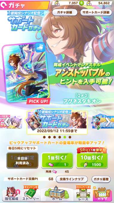 ステ上限突破の調整きたし、SSRタキオン欲しいなー