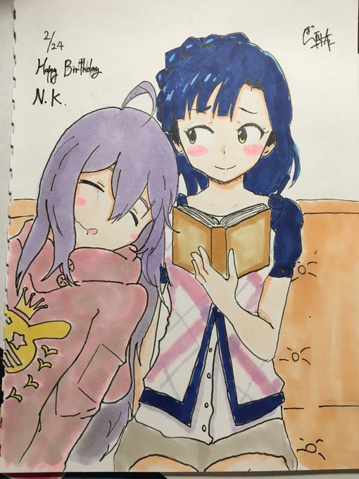 そういえばこの間友達の誕プレ用に、描いて塗ったやつ。 #あんゆり #七尾百合子 #望月杏奈 #絵描きさんと繋がりたい