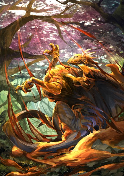 両手をばたつかせてあたふたした様子のまま琥珀色に固められて静かな森の中にぽつんと佇む様子が出ていて良い感じ