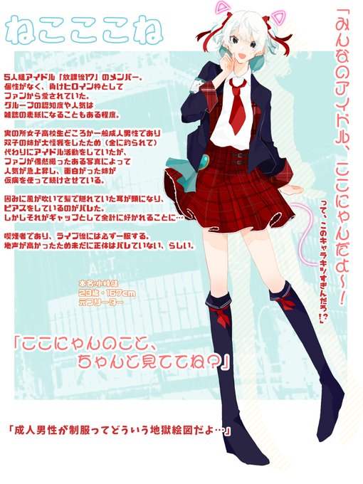 #誰のキャラデザだゲーム 白髪黒目アイドル誰デザに参加させて頂きました🕺💃 私が担当したのはプリティアイドルねこここねちゃん🐱です! しっかりキャラメイクしてあるので他の参加者さんのCSも是非見てくださ~~~い! リプにアンケート繋げます🎤