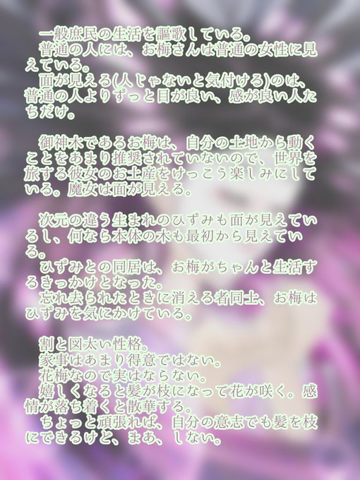 続いて、お梅さん。…の、ふんわりアバウトなご紹介とか。