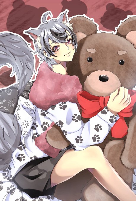 途中まで見せたイラストが完成したぞ‼🐺💫前回はとは真逆で可愛らしい一面の犬神を描いてみたぞ🐺どやっ‼犬神、テディベアが好きすぎて実際にこう言う大きいクマ持ってるんだなーww