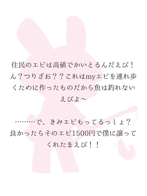 # フォロワーさんからイメージもらって自分をどうぶつの森の住民化する リプくれた皆さんありがとうございまエビ〜!!! (イラストはカードぽい感じで、表にキャラ 裏にキャラのセリフを描きました) ところで何故あつ森にはエビがいないの??🥺🥺