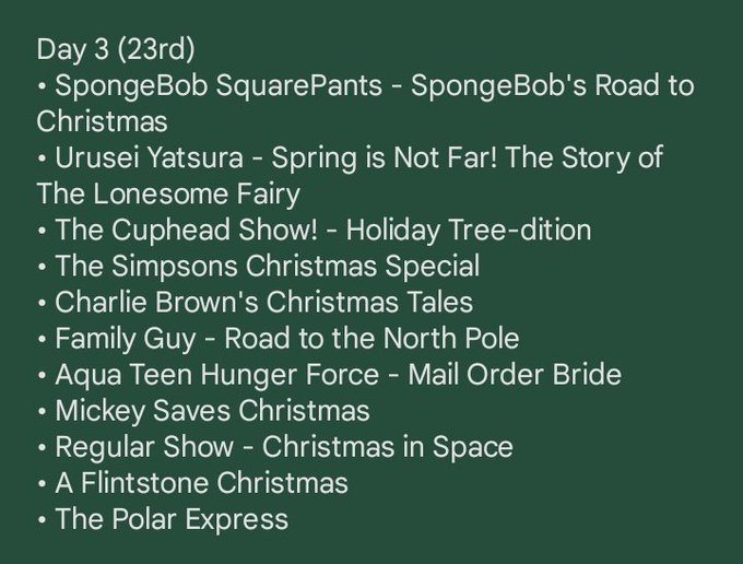 Day 3 of my yearly Christmas television schedule! Today is going to be a good one, but I'm VERY eager for tomorrow's lineup!!! 🎄✨