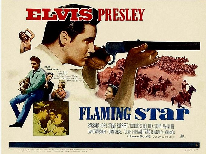 燃える平原児。原住民と開拓者の全面戦争の中で苦悩する白人とインディアン夫婦一家、次男の混血児エルヴィス。歌唱場面は抑えられ、白人の占領と差別意識を描き、悲劇の復讐鬼と化す主人公という骨太の異色西部劇をスーパースター主演で見せる監督シーゲルの気概たるや。B・イーデンがまだあどけない