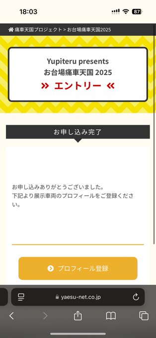 無事 #痛車天国 エントリー出来ましたので、3月23日予定通りお台場に出没しますのでよろしくお願いします🙇