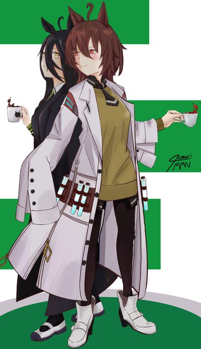 この二人いいよね。白黒とか趣味思考の対比含め #ウマ娘 #アグネスタキオン #マンハッタンカフェ