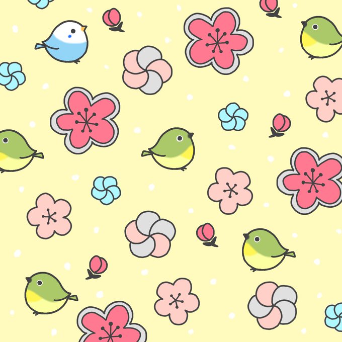 メジロちゃんの花柄を描いてみました🐥1匹別の子も紛れてますので探してね🙌