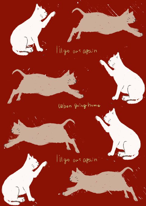 #猫の日 ということで、ギャラリーに展示している絵の別バージョンにゃ🐱 #いってらっしゃい #おかえりなさい