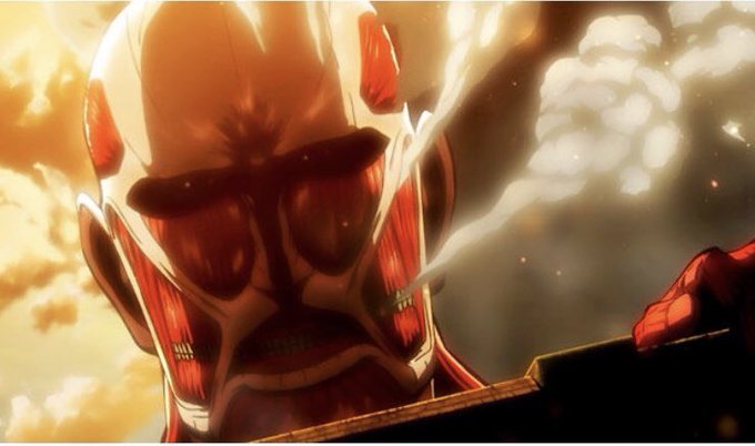 進撃の巨人S1第1話視聴(BS日テレで再放送中)。観るのは4回目、これまでの3回はエレンの母が喰われるシーンがショックで視聴を断念したが😱今回は続けてみることにする👍 #進撃の巨人