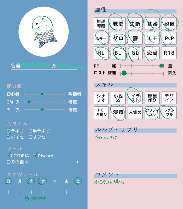 #TRPG自己紹介シート #TRPG好きと繋がりたい こういう探索者やってます!沢山回りたいです!!!