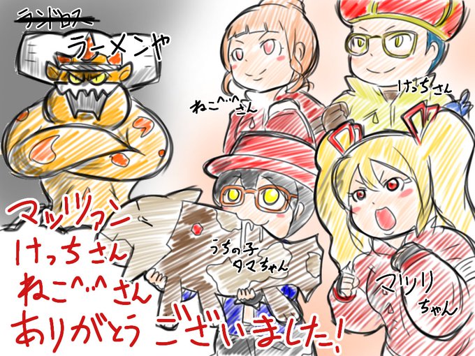 マッツァンのポケモン剣盾冠の雪原生放送お疲れ様でした。ダイマックスアドベンチャーにて参加させて頂いた記念のラクガキ。絵日記風で。他所様のプレイヤーキャラとか勝手に描いたら怒られるかな…#いい大人達