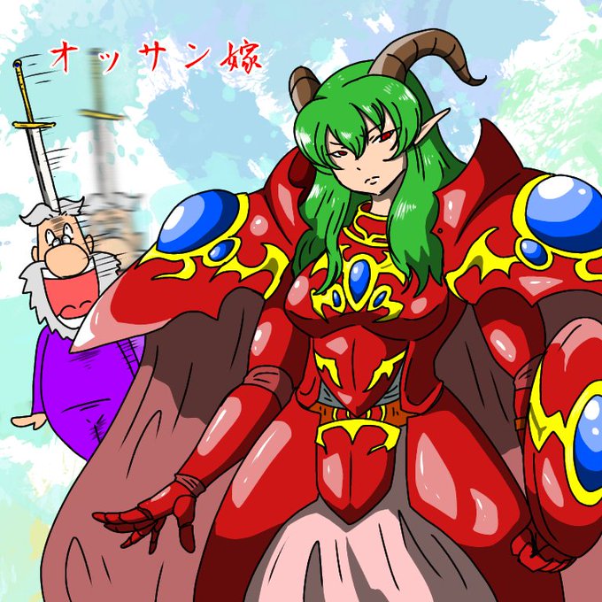 気まぐれにオッサン嫁を描いてみた。他人様のオリジナル嫁キャラを描くとなると、自分ごときが描くことで汚すことにならないかと不安になる。…まぁたぶんオッサンこれ見ないから大丈夫かな。うん。#いい大人達
