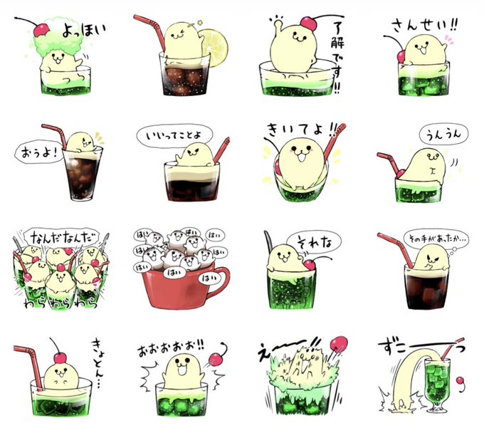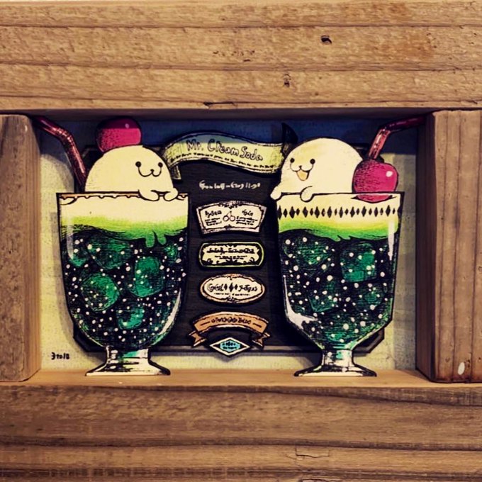 8月分オーダーメイド。クリームソーダ&コーヒーフロートのご注文です。既存作品をベースに、少しずつ雰囲気や色を変えていきます。