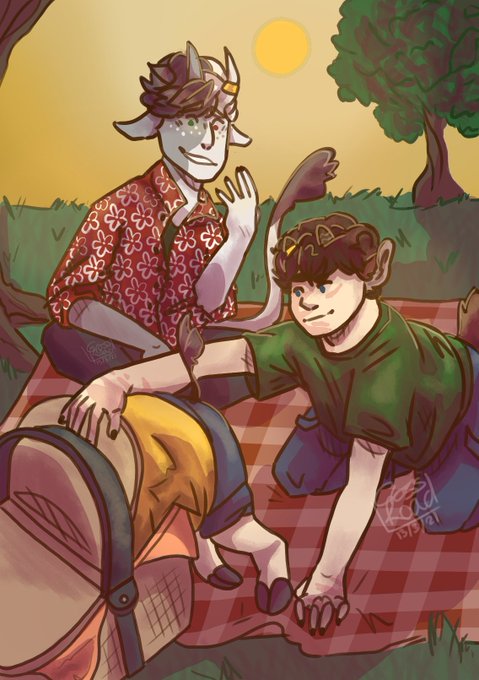 Little picnic idea i had and decided to draw, these guys bring me such comfort when i draw the :) might be a cool phone background.
