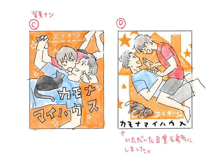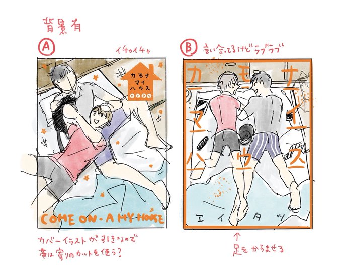 「カモナマイハウス」のラフ案です🌸 先生、この汚いラフから超超可愛くて素敵なイラストを起こしてくださいましてありがとうございました😭🙏✨