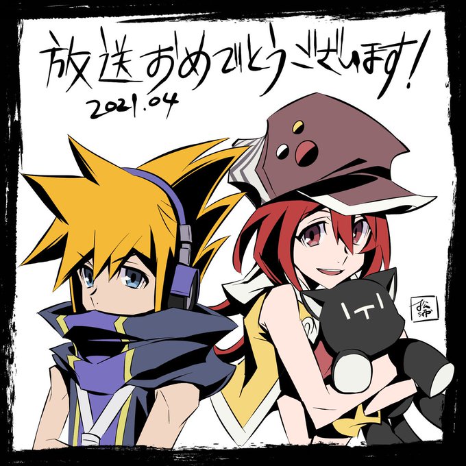 Para celebrar el estreno de The World Ends With You The Animation, el diseñador Arisa Matsuura creó esta bonita ilustración de Neku y Shiki