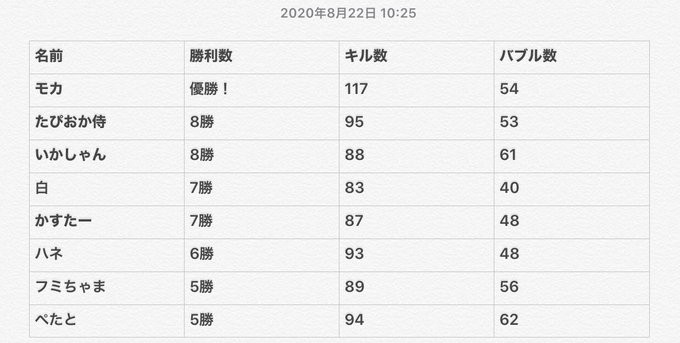 #おちば10勝プラベ 集計終わりました!