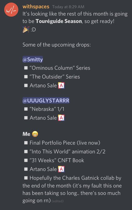 @SmittyStudio, @UUUGLYSTARRR and myself all have drops coming up, as well as pieces for the second @artano__io sale! I hope everyone’s ready! :D