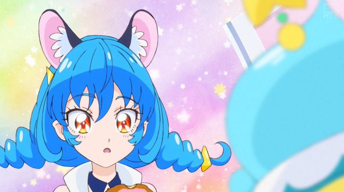 香水は変装を補助する道具って言っていたけど、元の姿の時以外の時に耳が4つあるのも香水の不具合かな?それともブルーキャットは変装が下手なのかな? #precure