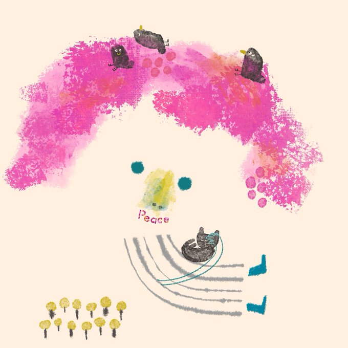 みんな一緒だにゃ😽 #doodle #love #illustration #art #artist #artwork #painting #drawing #Procreate #digital #painter #picture #cute #paz #cat #happy #peace #spring #animal #nature #twitter #落書き #平和 #イラスト #絵 #猫 #鳥 #動物 #アート #自然 #ほっこり