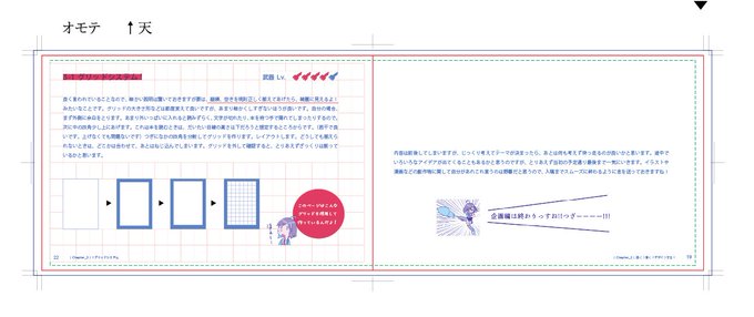 コミティア新刊は、オリジナルコンテンツ『天華』(@tenka_jp )の制作にあたり、デザイン観点から取りまとめた本になります。40p文字多め。これくらいのレイアウトができるようになる本だと思います(保証はない)よろしくお願いします!