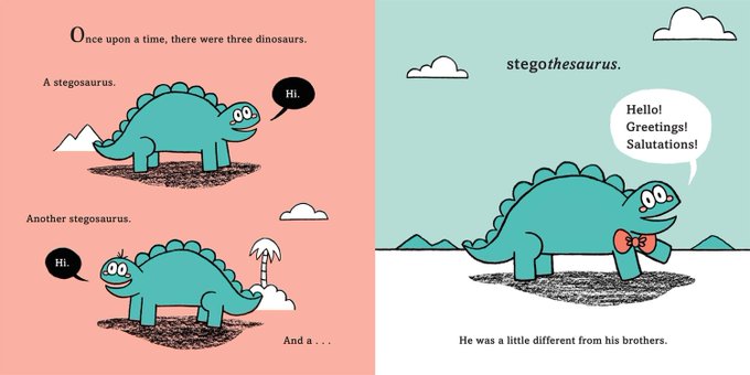 It's TRICERATOPPOSITE's book Birthday! Written by the wonderful @bridgetheos from @MacKidsBooks, the long awaited spiritual successor to the 2018 cult classic Stegothesaurus is finally here!!! I hope you hate it! I mean love it! 🎂🦖https://t.co/lYKMHdhhge