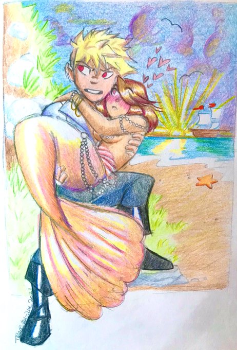 Pirate helps a mermaid washed up on shore~ 🏴☠️💕🧜🏽♀️