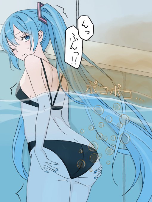 水中で水着ずらしておならするミクちゃん