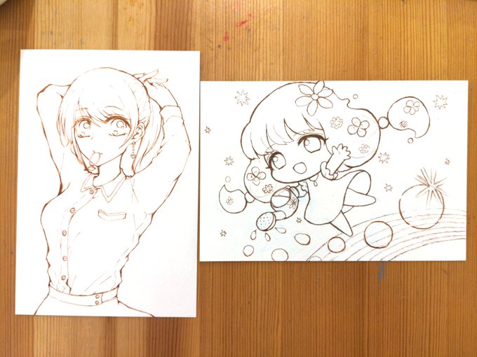 波花しおちゃんとのオフ会 アナログでの線画交換で私が描いた滴ちゃんをしおちゃんに塗ってもらいました! 本当に水彩初心者かよ…と思わせるような塗りを披露してくれたので何度も舐め回すように見つめました そして、スケブに潮ちゃんも描いて頂き満足…可愛いデフォルメ描かせたら天下一品や…!