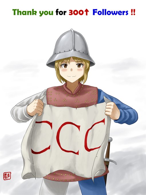 300フォロワー超えのケトルハットとブリガンディンを装備した歩兵娘