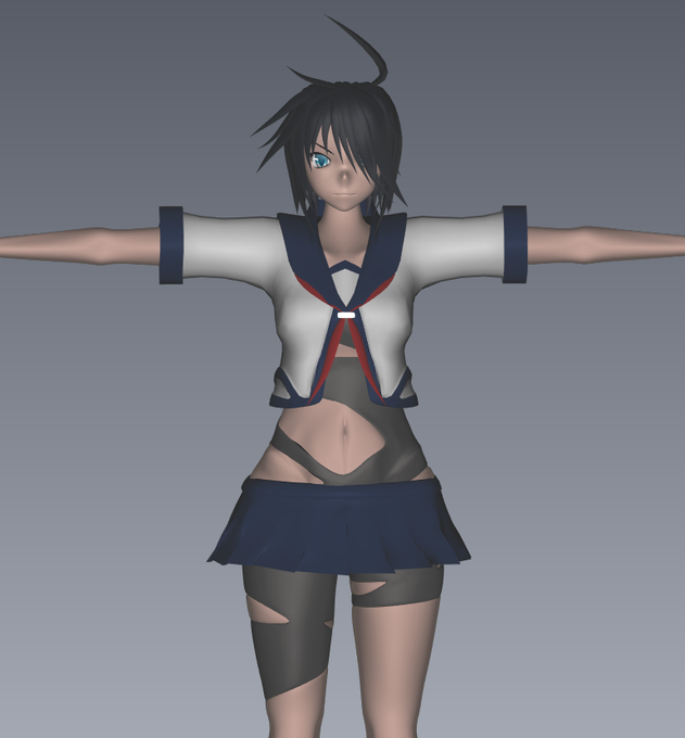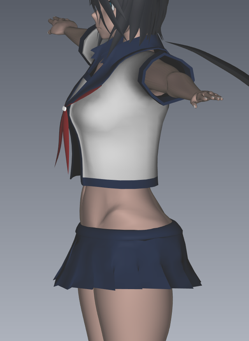 とりあえずセーラー服まで作ってみたけど・・・包帯巻いてないと加古ちゃん島風並みの露出だなぁ。