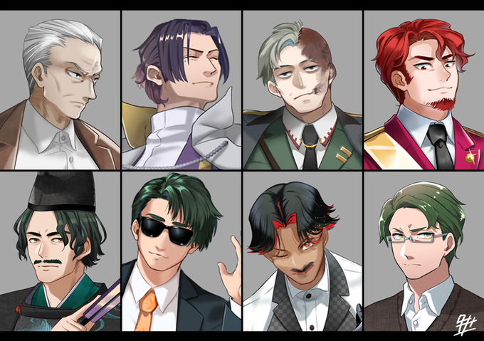 #おじさんのイラストだけで興味を持ってくれる方へ届け キャラデザと立ち絵ばかりだから、おじさんの顔まとめようと思ったら選挙ポスターみたいになったの笑ってください