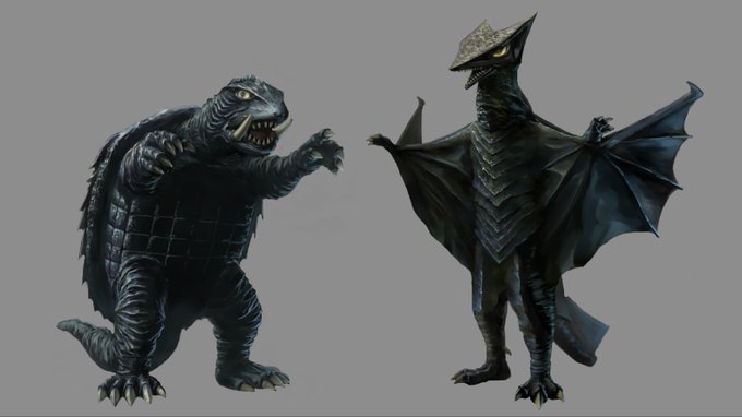 ガメラの永遠のライバル、大怪獣空中戦ガメラ対ギャオスのギャオスを完成しました(*`・ω・)ゞ 同じく昭和42年に公開した怪獣映画の怪獣と同じスケールで並んで見ます。昭和時期ではガメラシリーズの怪獣のサイズは東宝特撮の怪獣よりデカイです。 #ギャオス #大怪獣空中戦
