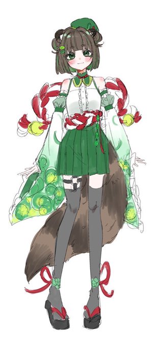 ゆす(@ snowdesnow)が描いてくれたんだけどー!!!!! 本当に最近に出した新衣装なのに筆早すぎるしめちゃ可愛くて嬉しすぎる😭😭🫰 ありがとう💚🍃🥝