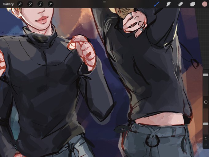 This might flop but I’m proud of how much I’ve improved from my first drawing of Jiminie dancing reggeaton based on Ella’s au 🥺🥺🥺