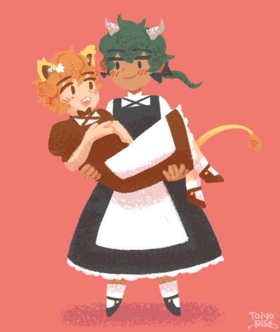 maid day maidday with @thombrownie ~ 🦁🐲💛 #vtuber #taiyordoodle #thombieart