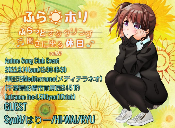 【アニクラ告知】8/14(日)12:30~ 津田沼メディテラネオ #ふらホリ vol.28