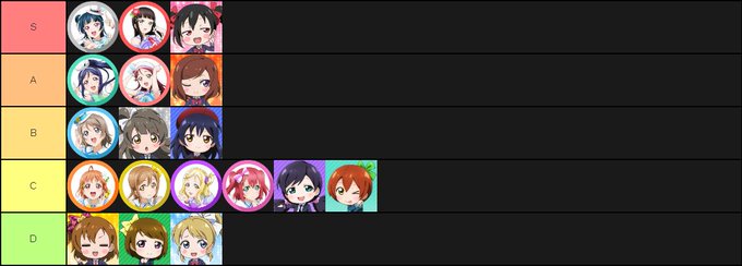 Alright, I'm bored so here's some mobage idol tierlists by someone whose sole exposure to them is via random twitter images.