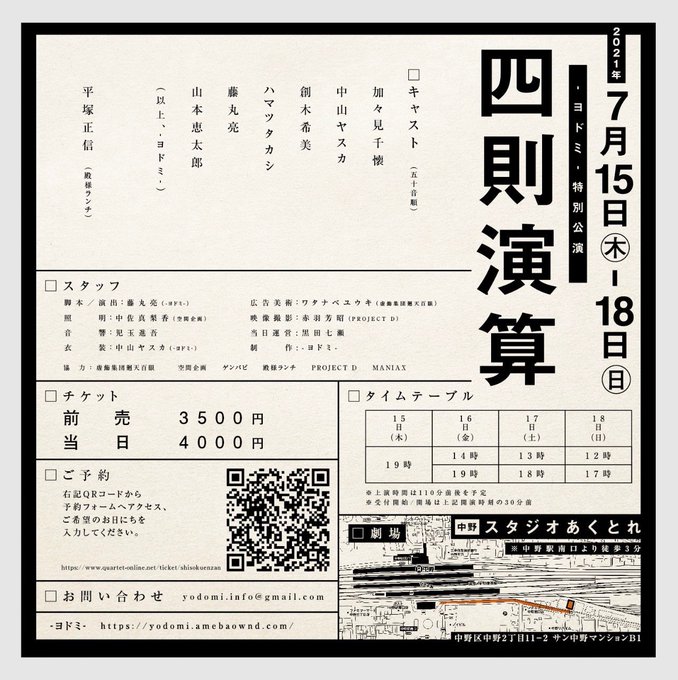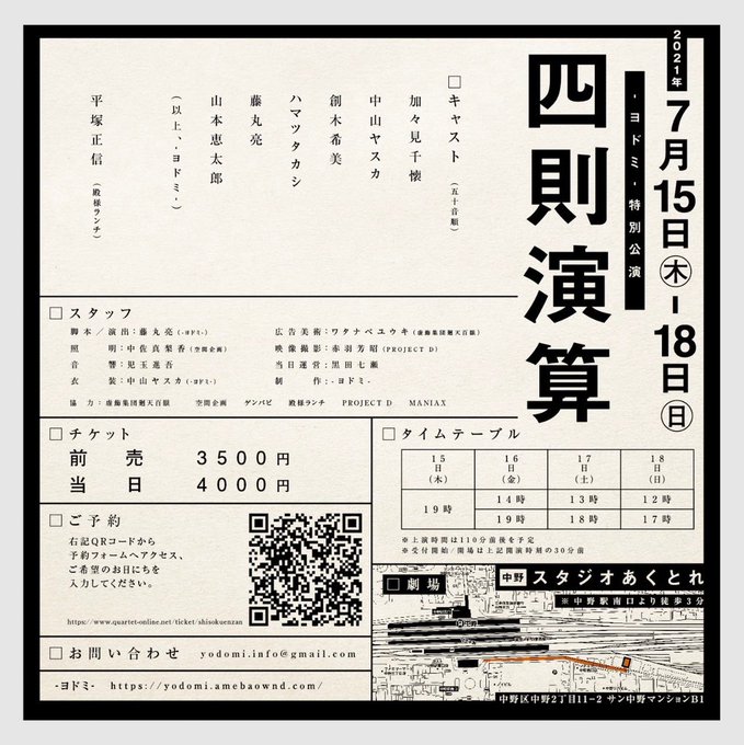 7/15(木)〜19(日)中野スタジオあくとれ