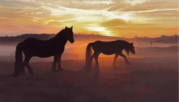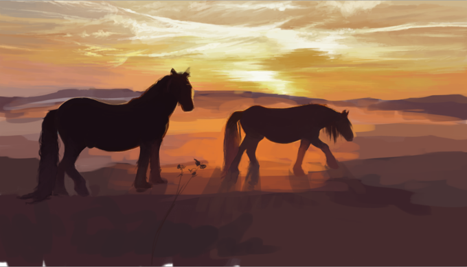 Done finally with my painting! on to the next one! #digitalart #painting #horses #sunset