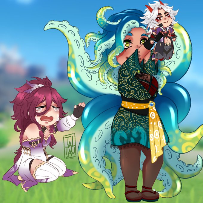 i wanna draw embra so much right now... but i have work to do... also i decided that Embra is my Genshin impact character/artsona sort of, but she plays the role of traveler